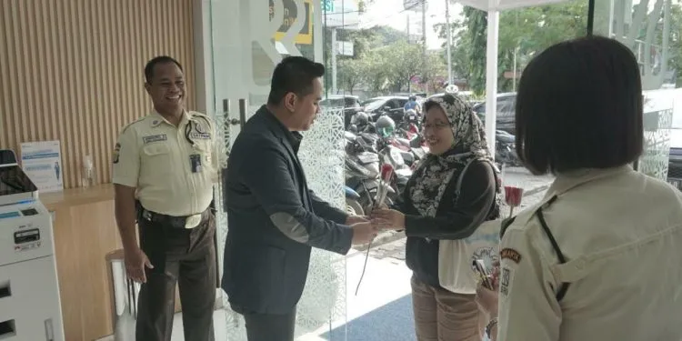 “Kami sangat senang, bahwasanya di Hari Pelanggan Nasional kali ini, kami mencoba membagikan cokelat dan bunga kepada 10 nasabah setia kami,” ujar Wicaksono.