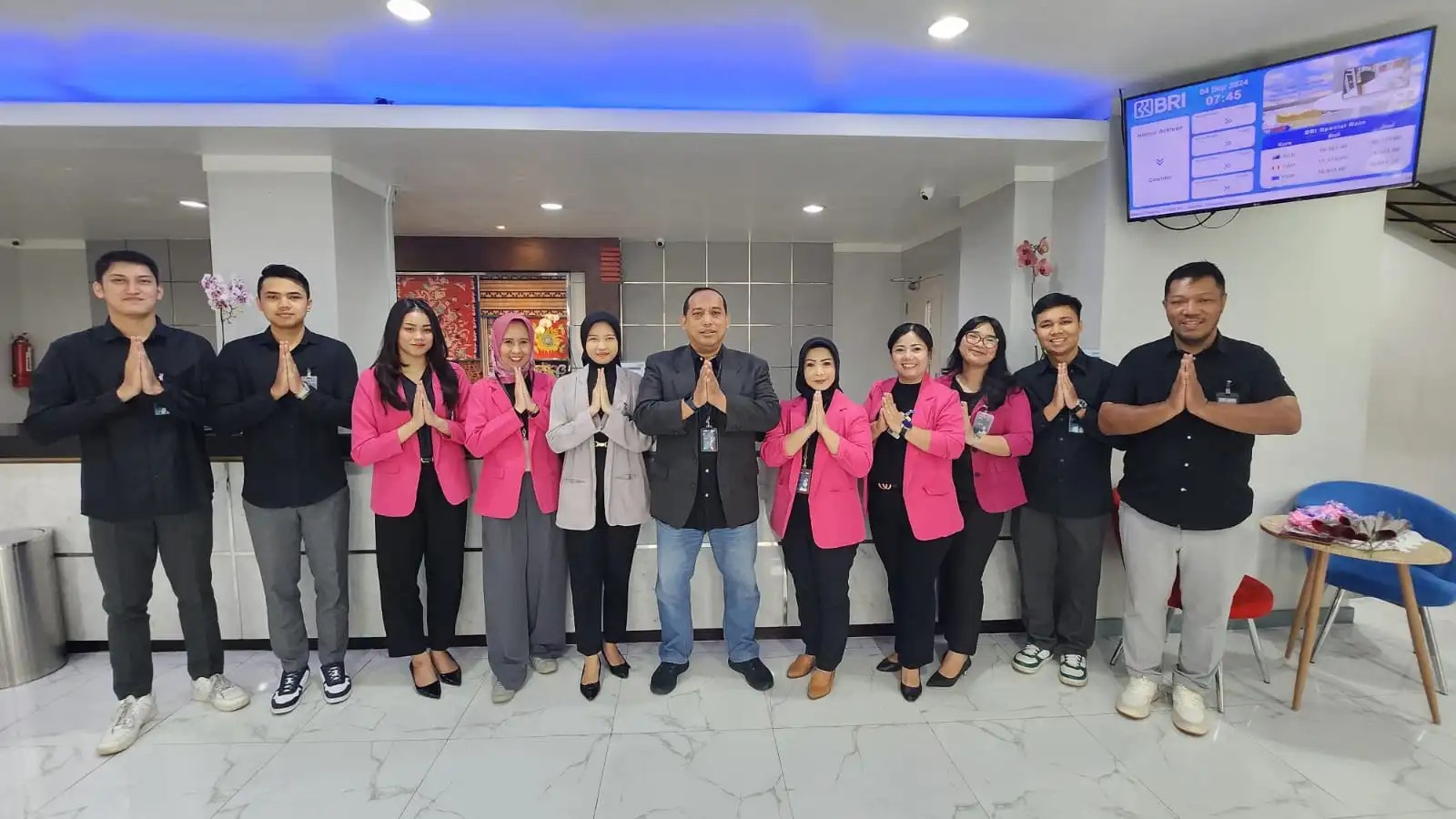 Pemimpin Cabang bersama tim Operasional dan Layanan Kantor Cabang Tanjung Duren menyambut langsung nasabah yang datang secara antusias dan memberikan souvenir sebagai tanda terima kasih kepada nasabah atas kesetiannya selama ini memilih BRI.