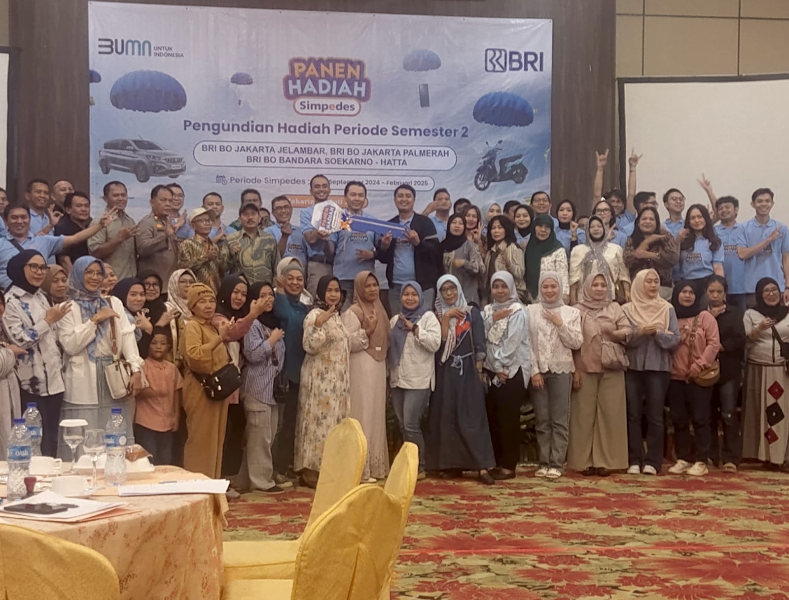 Tiga kantor cabang Bank Rakyat Indonesia (BRI) di wilayah Jakarta, yaitu BRI BO Jakarta Jelambar, BRI BO Jakarta Palmerah, dan BRI BO Bandara Soekarno-Hatta, sukses menggelar pengundian Panen Hadiah Simpedes periode Semester II tahun 2024. Acara akbar ini diselenggarakan pada Sabtu, 12 Juli 2025, bertempat di Hariston Hotel & Suites Jakarta Barat, menandai pengundian periode II tahun 2024 yang rutin diadakan setiap enam bulan sekali.
